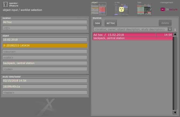 ORsecure ist eine professionelle Aufnahme- und Steuerungssoftware für die Durchstrahlungsprüfung (RT) mit Röntgenstrahlung im Rahmen des Objektschutzes, Personenschutzes sowie Grenzkontrollen und der Flughafensicherheit (z. B. Fundgepäck-Prüfung, Bombenentschärfung, Schmuggel bzw. Zollangelegenheiten, Spionageabwehr usw.). Die Röntgensoftware ist für den Einsatz von mobilen Röntgengeneratoren und digitalen Bildquellen konzipiert.
